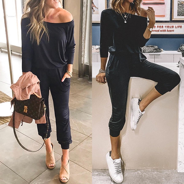 When you wanna update your daily style,you can just slip into this jumpsuit. It comes with a solidi color,