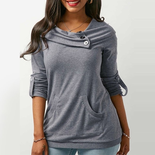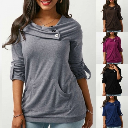 Fashion Solid Color Long Sleeve Oblique V-neck Sweatshirt