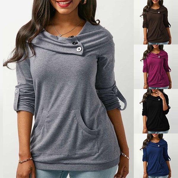 sweatshirt. Boasts a solid color,simple yet stylish,while the