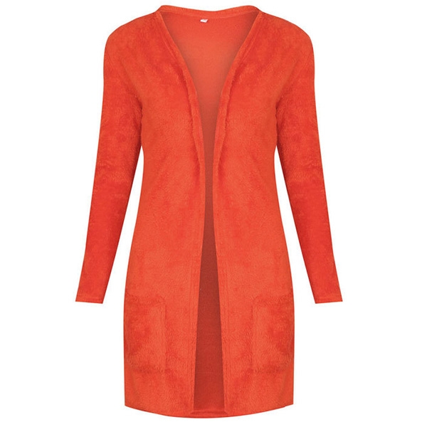 This plush cardigan comes with a bright color,which can bring your a happy mood. Finished with long sleeve and