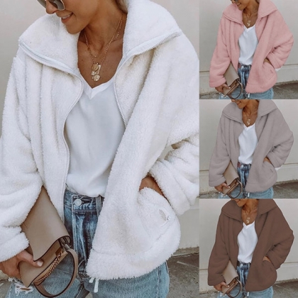 Add a soft and warm addition to your seasonal wardrobe with this plush coat.It is designed with solid color,