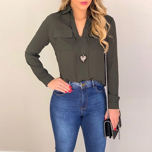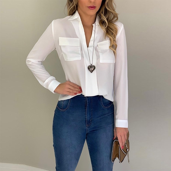 For your workdays,this shirt would be your wise choice. Solid color tone design makes it look simple