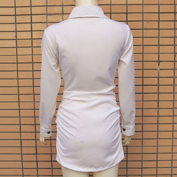white tone,finished with long sleeve,POLO collar and single-breasted design,the fit silhouette and lace-up