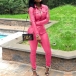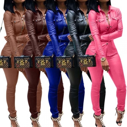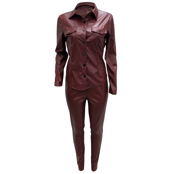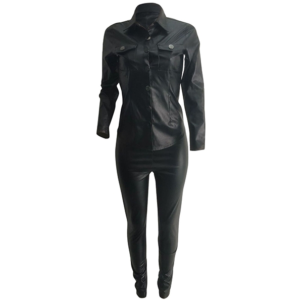 Din dagliga stil kan ha en helt uppdatering när du klär dig med denna PU-läder tvådelade uppsättning.