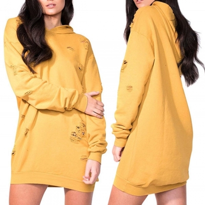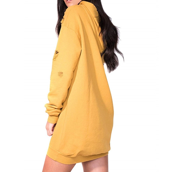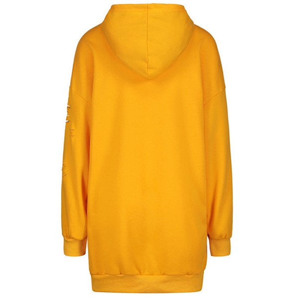 of this long-line drawstring hoodie. Cut from soft and smooth fabric, feature a loose silhouette with ripped