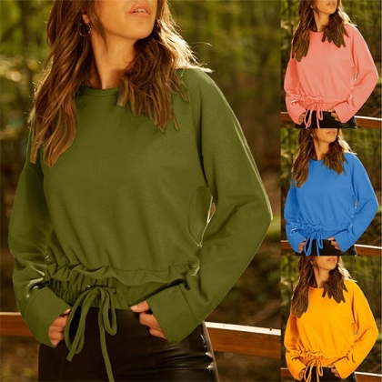 It comes with a solid color,finished with long sleeve and round neck design,the drawstring hem design is the most