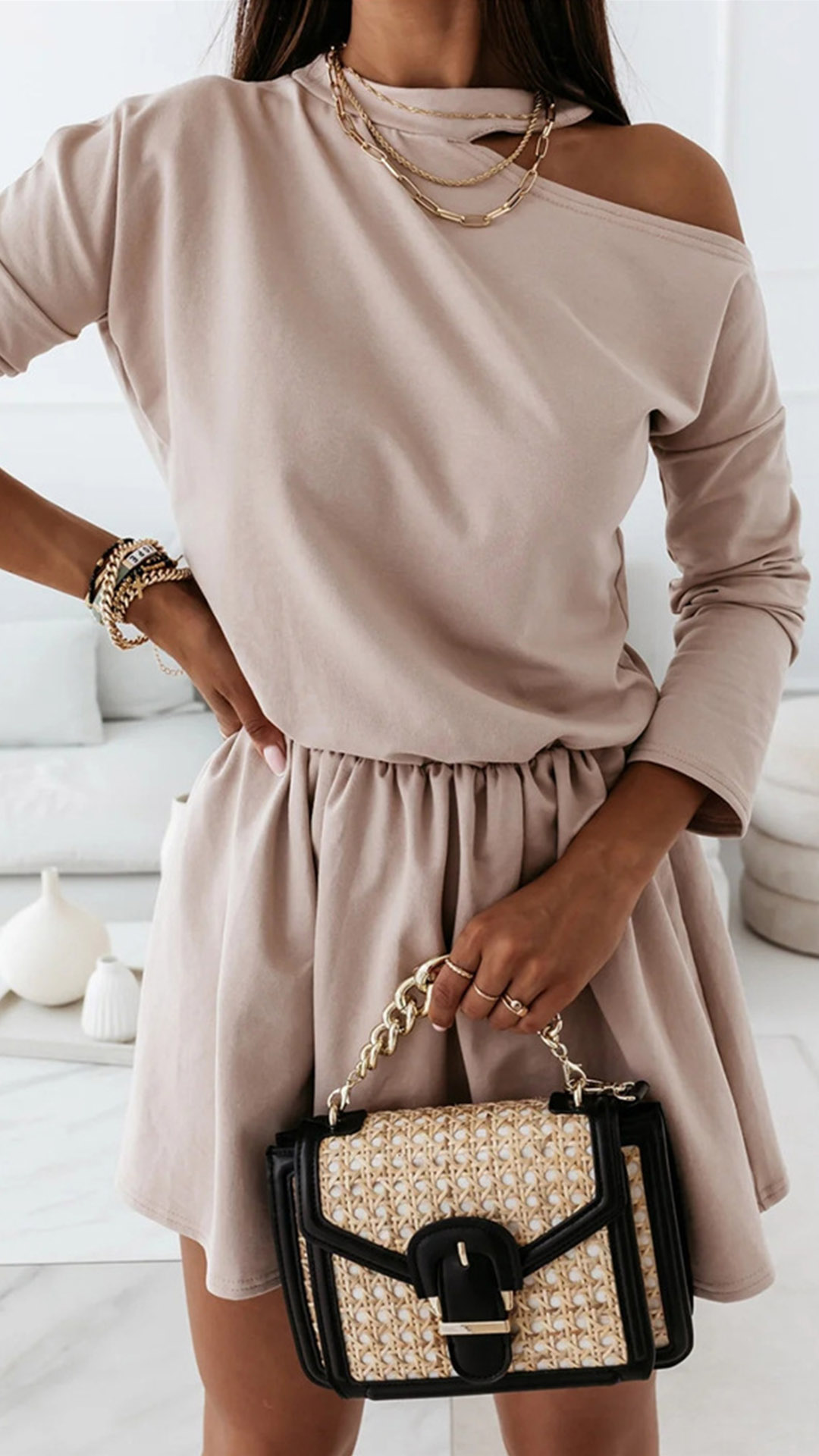 this dress would be your perfect solution. Boasting a solid color,the ruffle design at the cuff part will