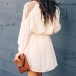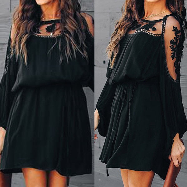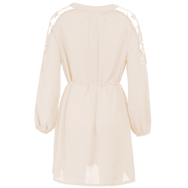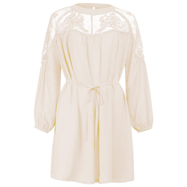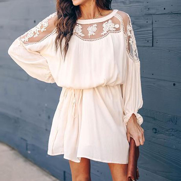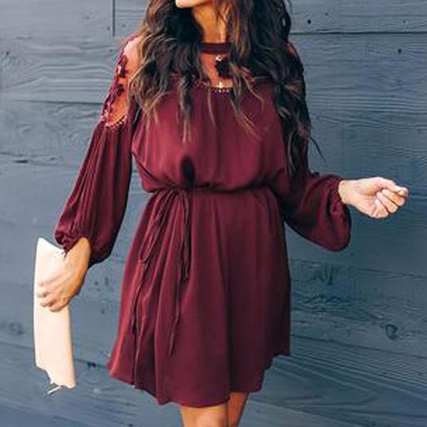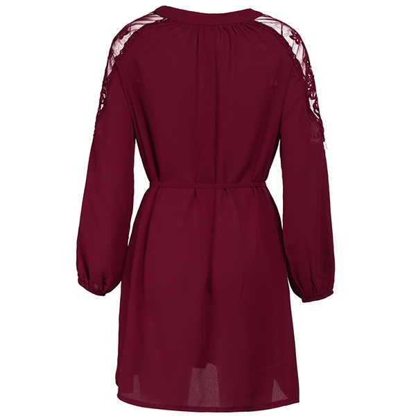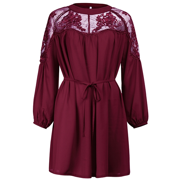 Solid color style,with long sleeve,round neck and gauze spliced design,this dress bears stylish flavor.
