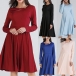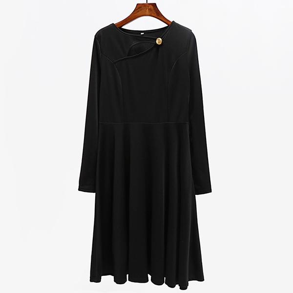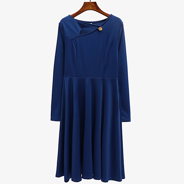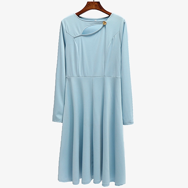 Boasts a solid color,elegant yet stylish. Outfitted with long sleeve,round neck and high waist design,