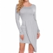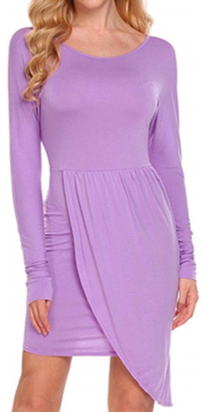 Fashion Solid Color Long Sleeve Round Neck Irregular Hem Dress