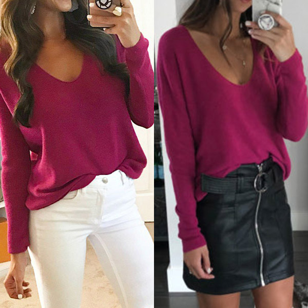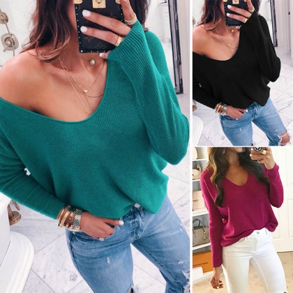When you feel a little cold,this knit top would be a wise choice. Comes with a solid color,with long sleeve,