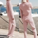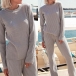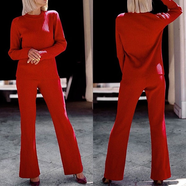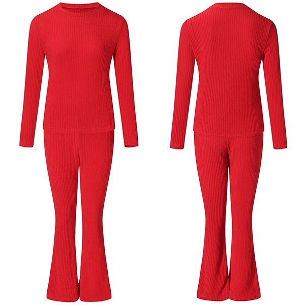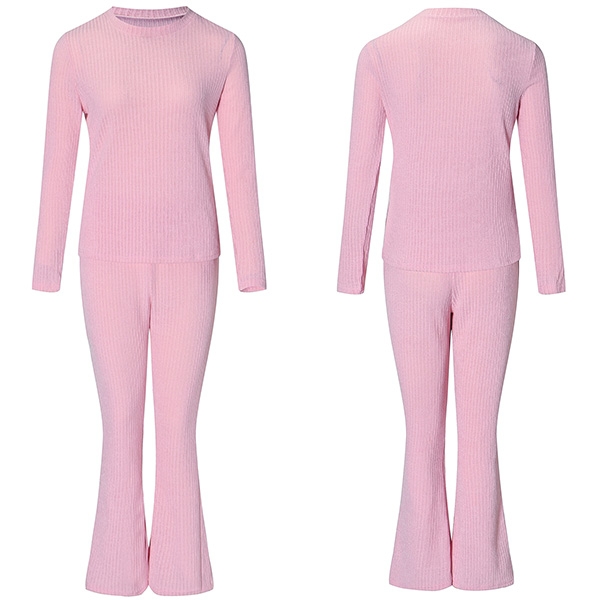 Solid color style,including a long sleeve round neck top and a pants,its soft and cozy knitted