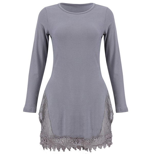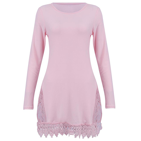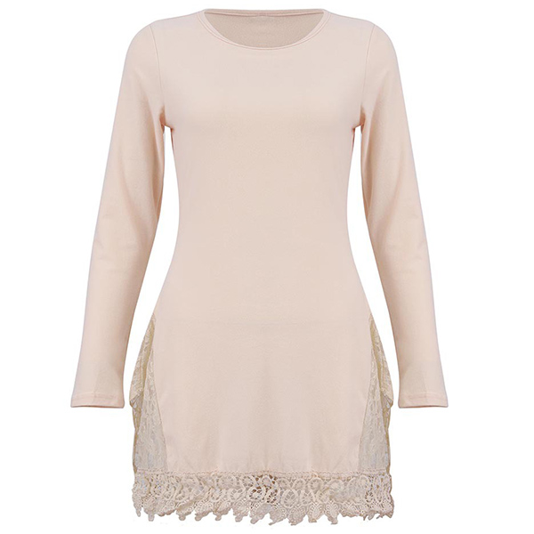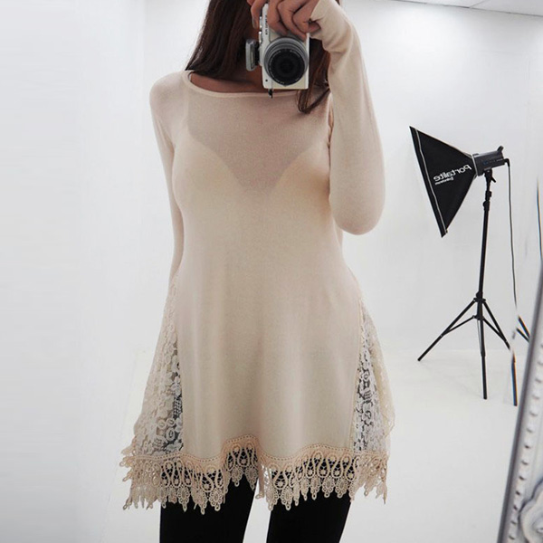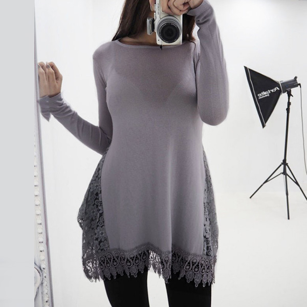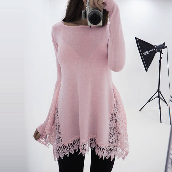 like long sleeve,round neck,soft fabric and unique design like lace spliced hem make this piece look so