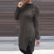 This sweater dress would be your perfect choice when the days get cold. Solid color style,with long