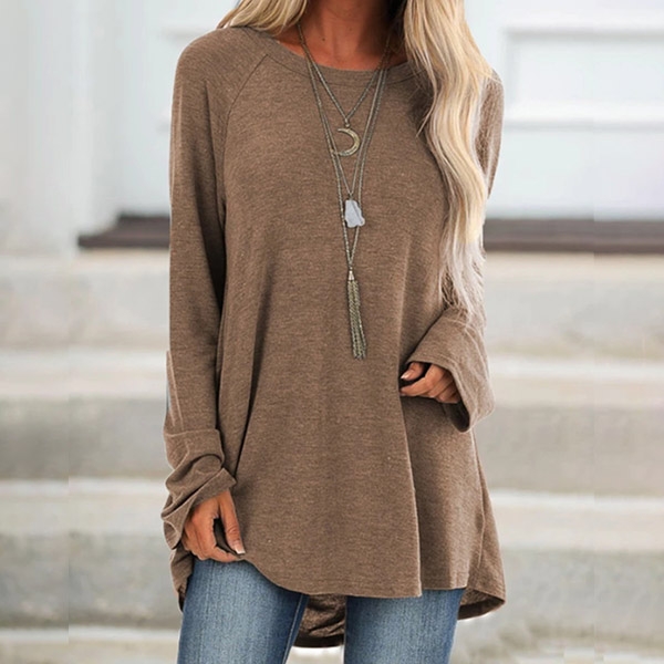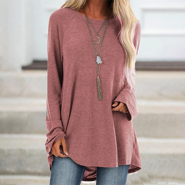 Solid color style,crafted from soft and breathable fabric,with long sleeve,round neck and a loose silhouette,