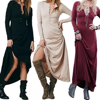 dress. It comes with a solid color,neckline part with buttons design will make it look more attractive and