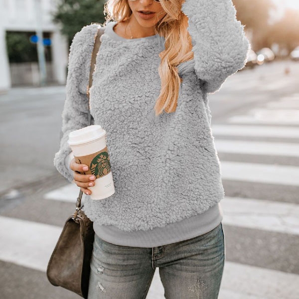 Fashion Solid Color Long Sleeve Round Neck Plush Sweatshirt