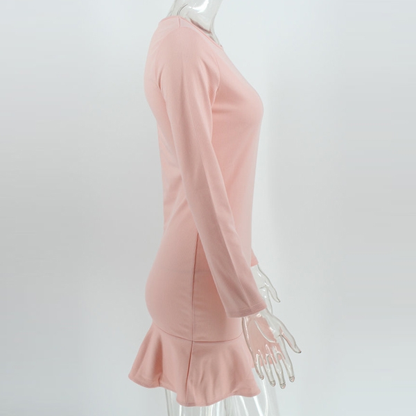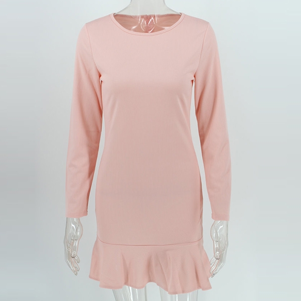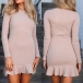 tone,finished with long sleeve,round neck and ruffle