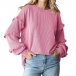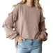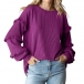 Enfärgad långärmad T-shirt med rund hals och volangdetaljer