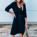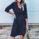 this easy-to-wear dress. Comes with a solid color,with long sleeve,round neck and