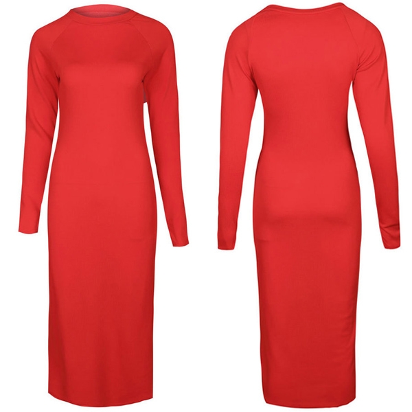 color,generous yet elegant. Finished with long sleeve,round neck and a fit silhouette,this dress also
