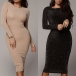 give you a simple,generous and elegant vibe. Finished with long sleeve,round neck and a tight silhouette,