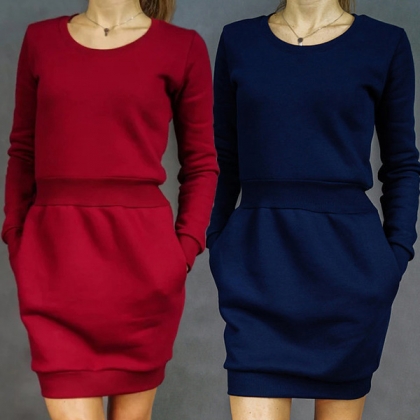 focused on this sweatshirt dress. It comes with a solid color,accompanied with long sleeve,