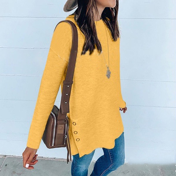 early autumn. Boasts a solid color,with long sleeve,round neck and a loose silhouette,design,