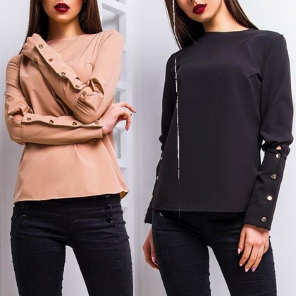 focused on this all-match top. Crafted in a solid color,the unique sleeve design can easily enhance