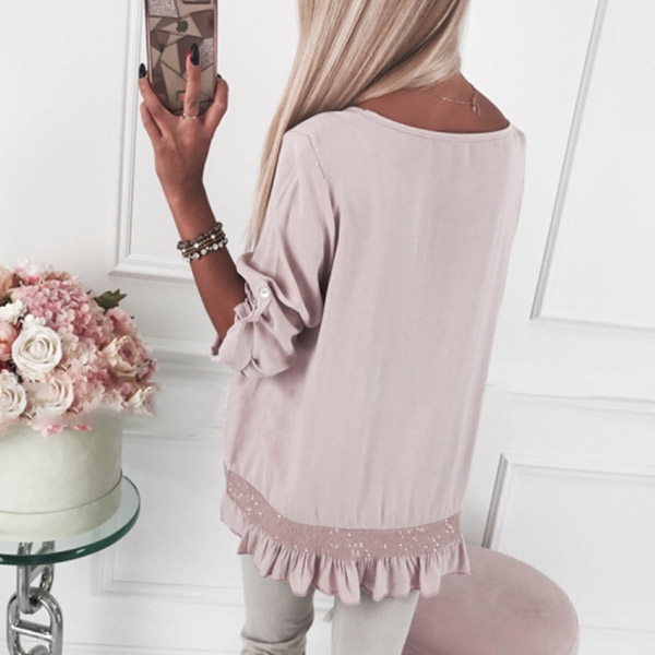 with long sleeve,round neck and ruffle hem design,this piece can give you a long-lasting comfort thanks