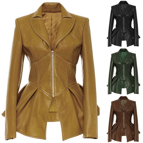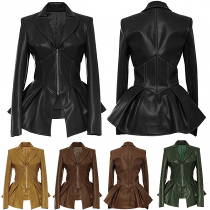 Only need one glance,I promise you would be attracted by this PU leather coat. Boasts a solid color,