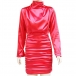generous yet elegant. Finished with long sleeve,round neck and a fit silhouette,this dress