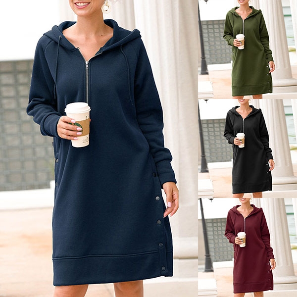Hey,girls,when the weekend hits,you can just slip into this sweatshirt dress to have a casual and