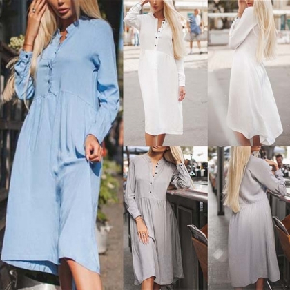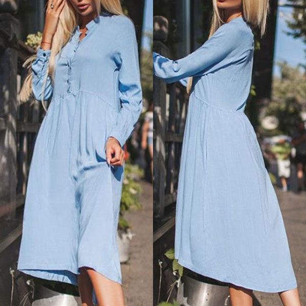 This dress would not make you disappointed. It is finished with long sleeve and stand collar design,