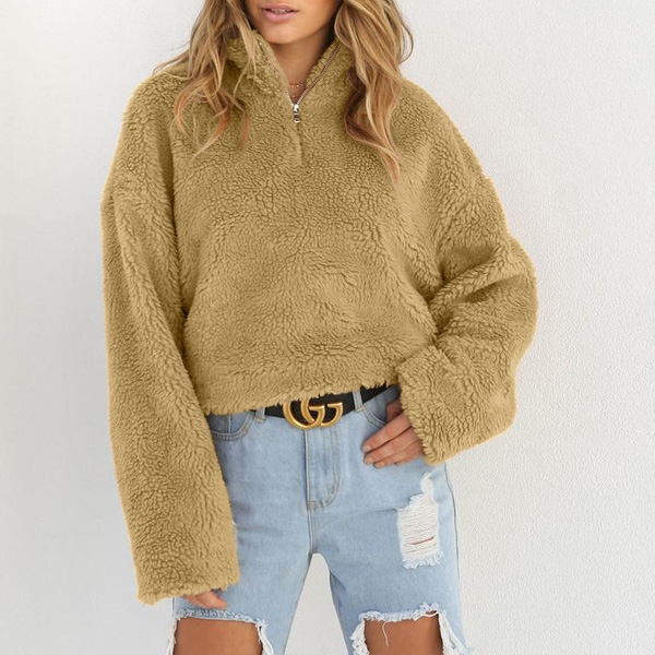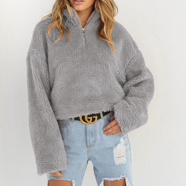 a solid color,finished with long sleeve and stand collar design,the soft and cozy plush fabric can keep