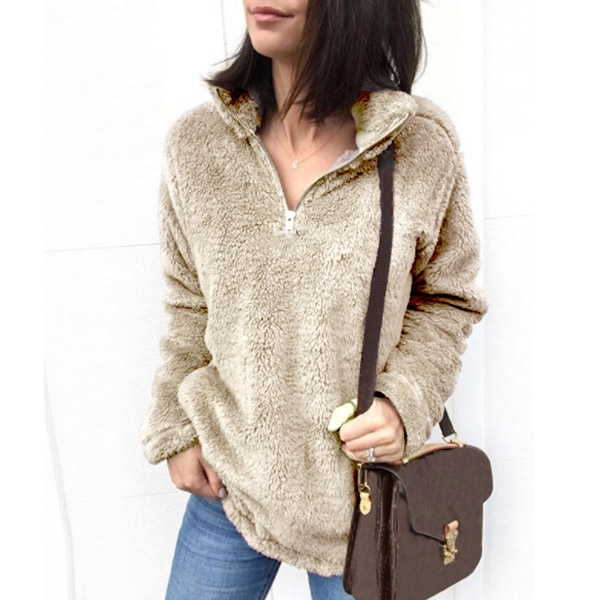 For the days when you feel a little cold,you can slip into this plush sweatshirt. Solid color tone design