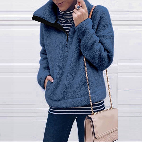 Embrace the cold days with this plush sweatshirt. It features a solid color,with long sleeve and stand