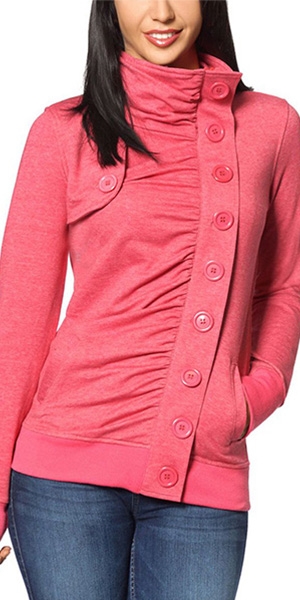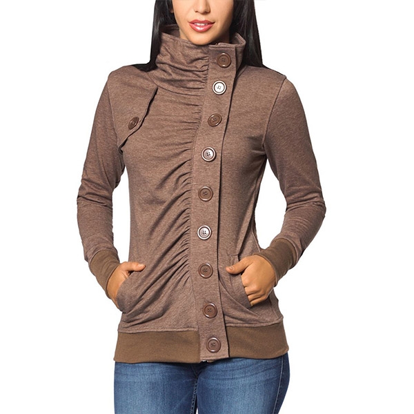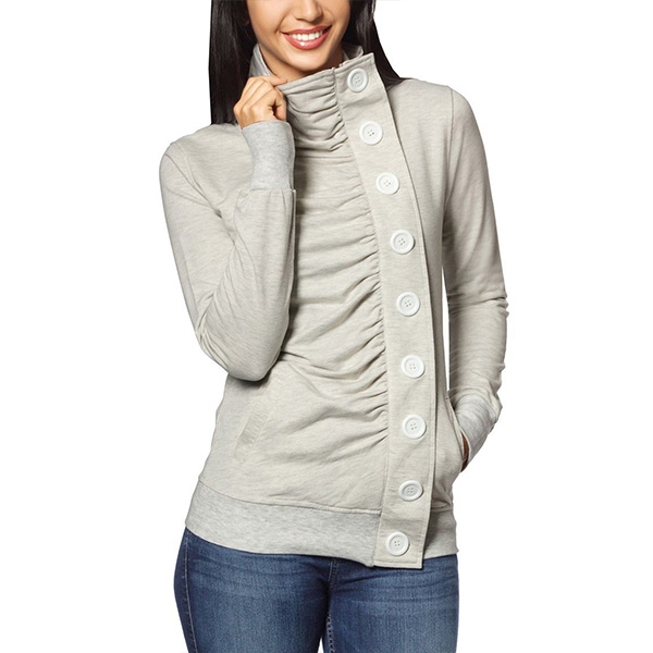 Fashion Solid Color Long Sleeve Stand Collar Single-breasted Sweatshirt