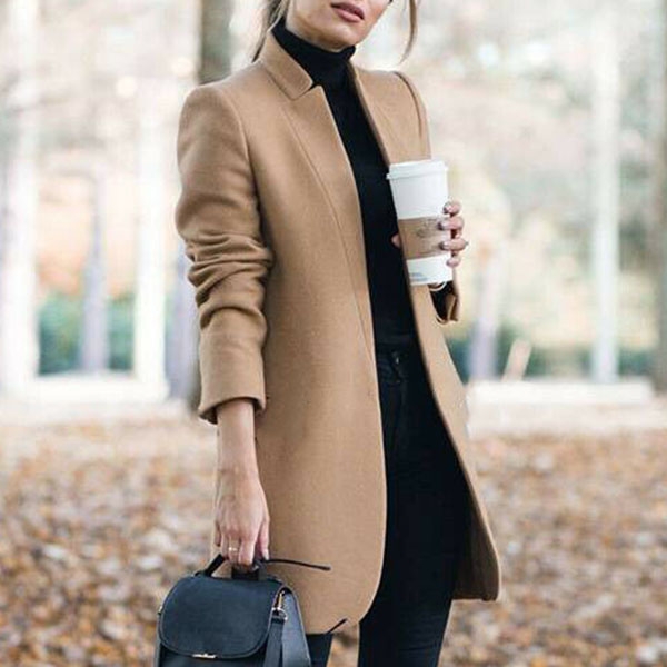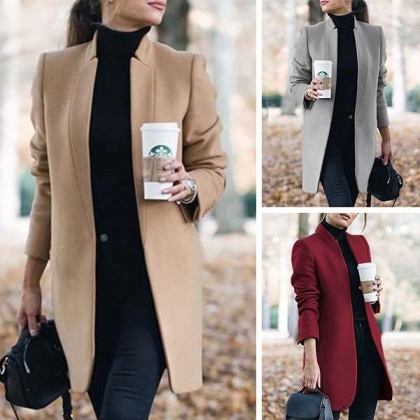 Mode Enfärgad långärmad stativkrage Ullrock