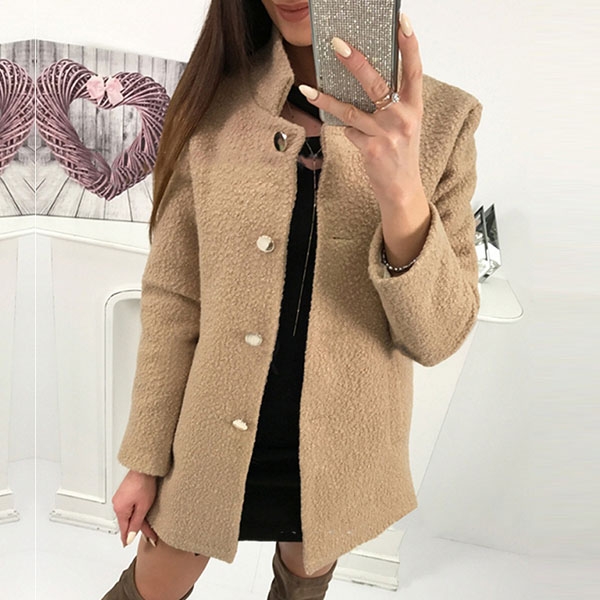 with long sleeve,stand collar,single-breasted and a clean silhouette,delicate yet stylish. You can easily