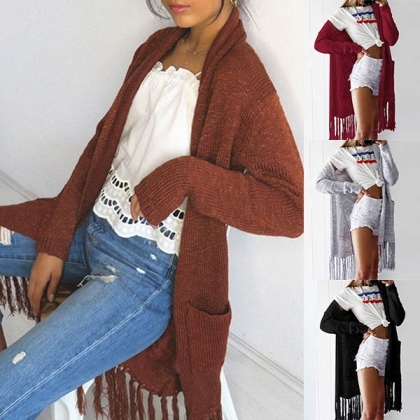 Features a solid color,the most attractive and distinctive design is the tassel hem design. The soft and cozy fabric