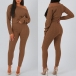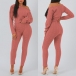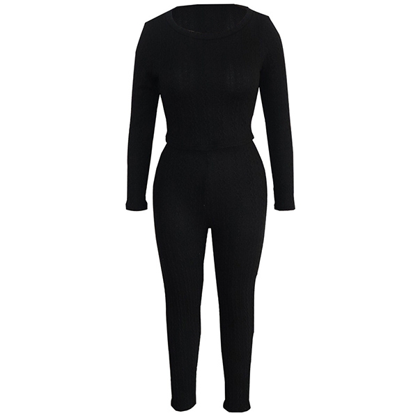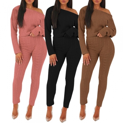 Fashion Solid Color Long Sleeve Top + Pants Knit Two-piece Set