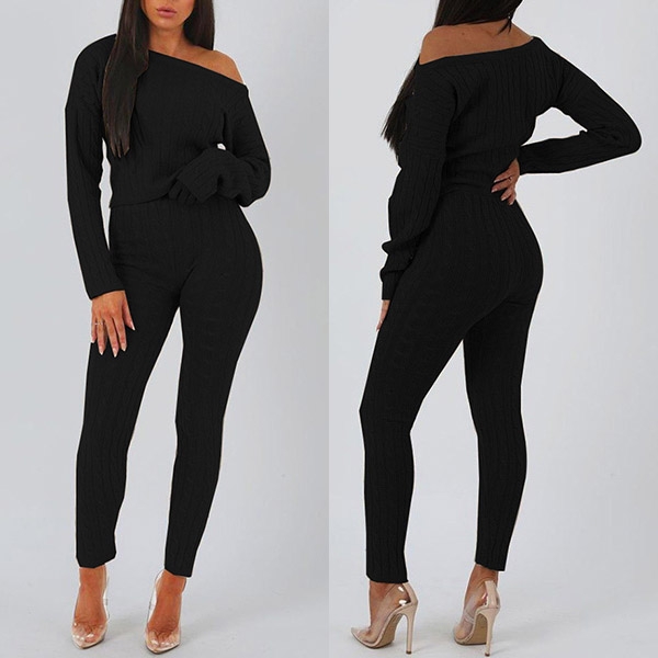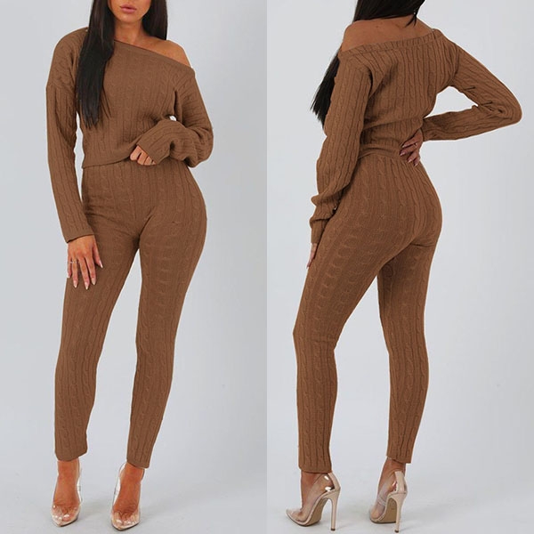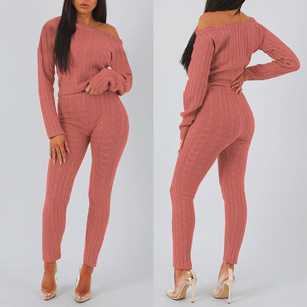 This knit two-piece set can display your chic and stylish personality. Solid color style,including a long sleeve
