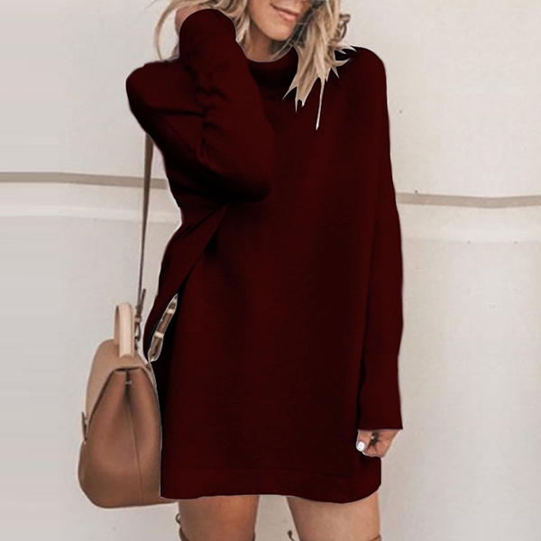 with long sleeve,turtleneck and a loose silhouette,this knit dress can offer you a simple yet charming look