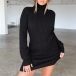 solid color,finished with long sleeve,turtleneck and a fit silhouette,this dress can keep you cozy and warm
