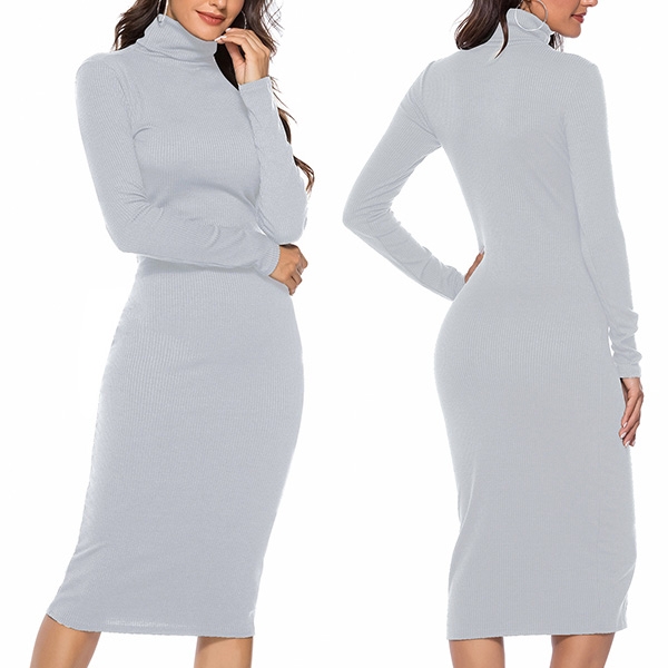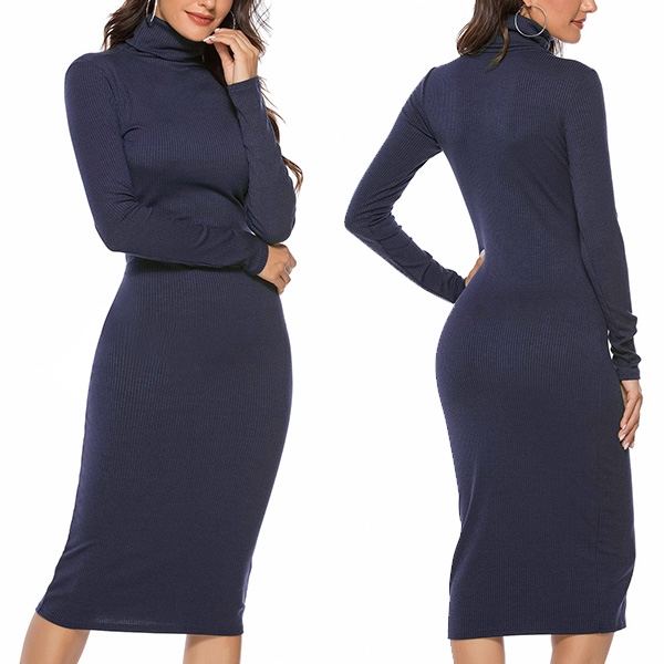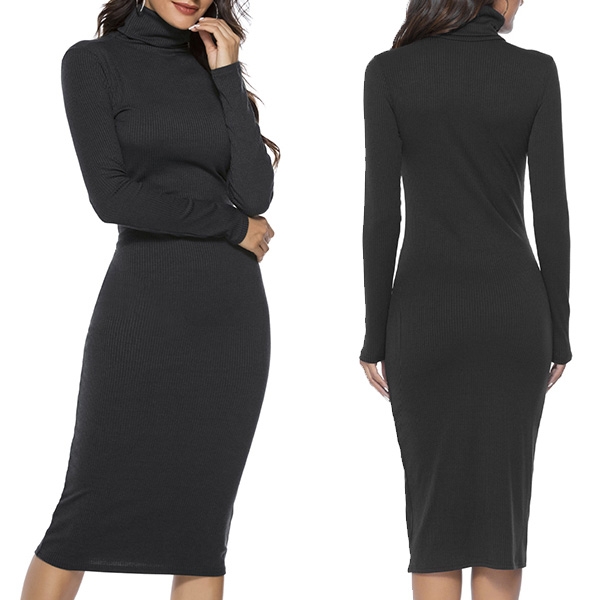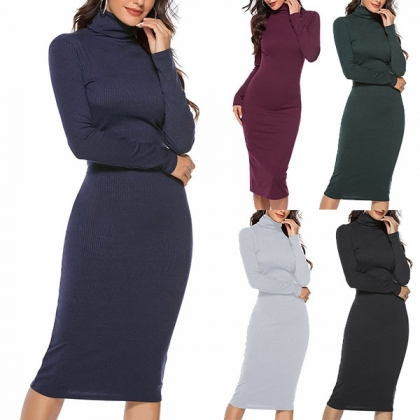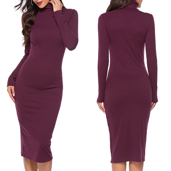 Boasts a solid color,with long sleeve,turtleneck and a fit silhouette design,this knit dress can keep you