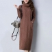 When the chilly season hits,this sweater dress is worth to have a place in your wardrobe. Finished with solid color and turtleneck design,the fit silhouette design can showcase your slender figure.In these chilly days,you can match it with your overcoat and over-the-boots to finish a charming winter look.