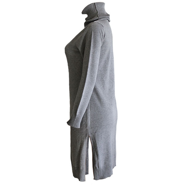 Fashion Solid Color Long Sleeve Turtleneck Slit Hem Sweater