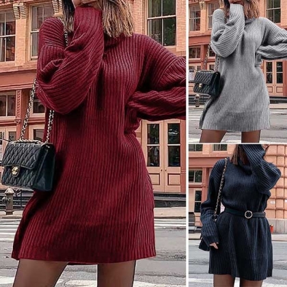 When the days get a little cold,you can slip into this sweater dress. It comes with a solid color,finished with long
