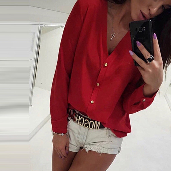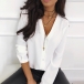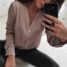 Fashion Solid Color Long Sleeve V-neck Blouse